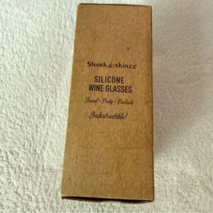 Never used. Set of 4 silicone wine glasses by Shark Skinzz. Includes vibrant pink, green, blue, and purple glasses. Ideal for travel and poolside use. Dishwasher safe.