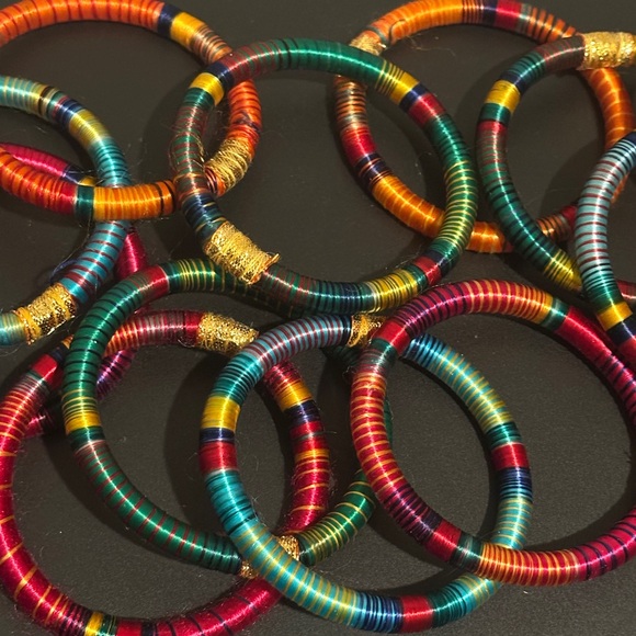 Colorful Silk Thread Wrapped Bangle Set