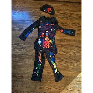 Colorful Skeleton Childs Costume Size large with Beanie Hat Halloween