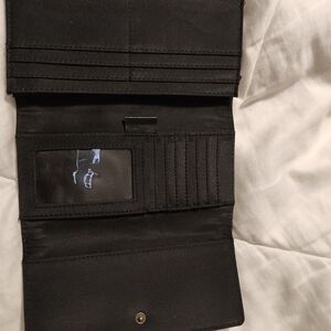 Vibrant wallet with a colorful skull pattern. Features shades of orange, yellow, and green on a black background.