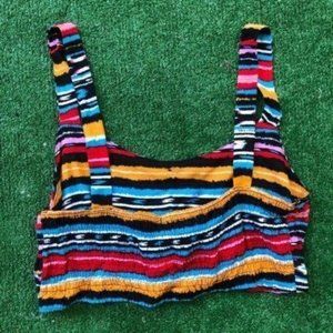 Fun crop top for spring and summer. the buttons are just style they are not functional but the back part is scrunched and stretchy.