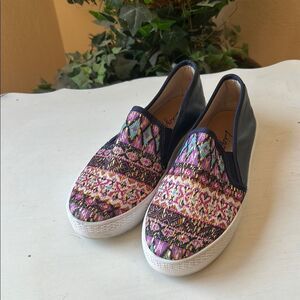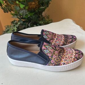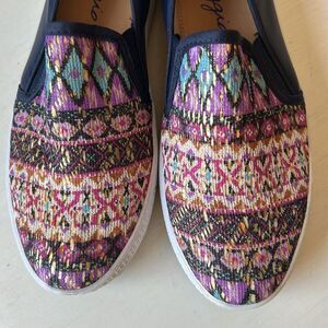 Step into style with these vibrant slip-on shoes. Featuring a colorful pattern, these shoes are perfect for adding a pop of color to any outfit.