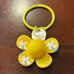 Set of colorful smiley flower keychains. Features vibrant designs in yellow, green, pink, and cream.