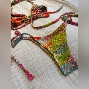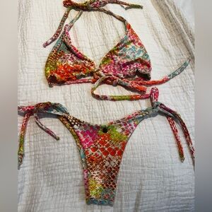 Vibrant neon snake skin bikini set. Pink, blue, orange, brown, green, and white. This will make your tan POP!