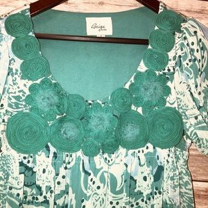 This is a fun and colorful dress perfect for a day in the sun . This dress is lightly used and is in excellent condition . It has a unique embroidery kn the first of the dress. It is layered with looming after the sheer colorful first layer.please review to see photos for condition and features.