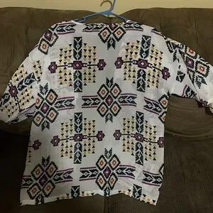 This item is a Colorful Spring Pattern Light Sweater that is great for hanging out with friends. It has never been worn and is still in good condition. Thank you!