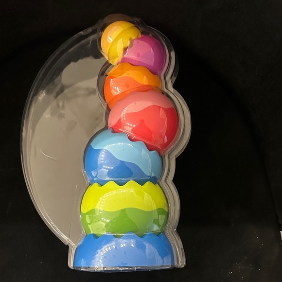 Vibrant stacking toy with multiple colors. Perfect for playtime.