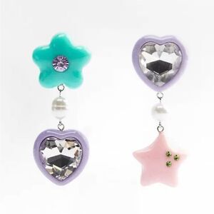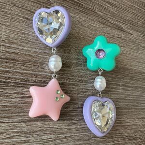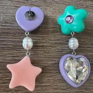 Vibrant earrings featuring turquoise and pink star designs with heart-shaped accents. Perfect for adding a playful touch to any outfit.