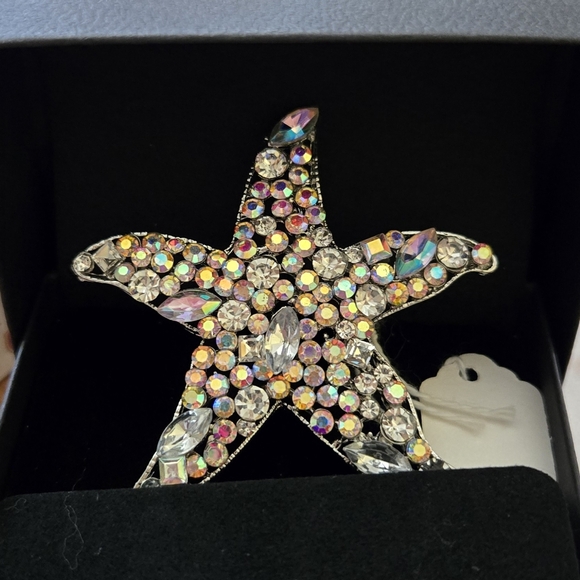 Dazzling starfish brooch with multicolored rhinestones. Perfect for adding sparkle to any outfit.