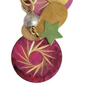 Charm includes metal moons, stars, bells, and colorful circles.