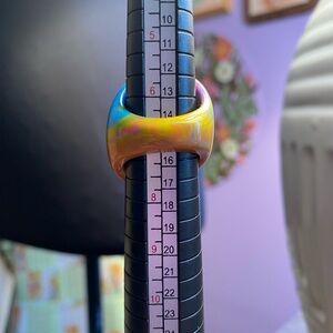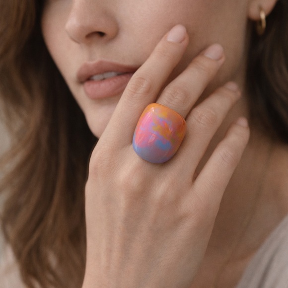 Vibrant statement ring with a blend of orange and purple hues. Perfect for adding a pop of color to any outfit.