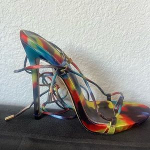 Colorful stiletto heels! Straps wrap around the ankles! Barely worn and in great condition!!