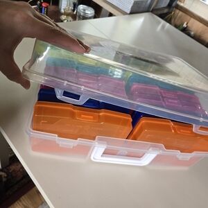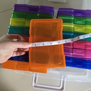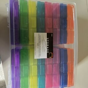 Organize with this colorful storage box. Features multiple compartments in vibrant colors. Has 16 boxes