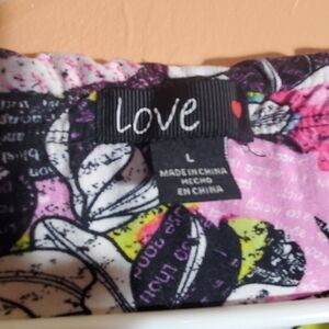 Vibrant strapless dress with a floral pattern. Features a mix of pink, green, and black colors.