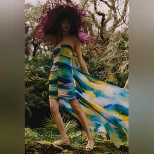 Make a bold statement with this vibrant strapless dress, perfect for any occasion.new without tag final sale