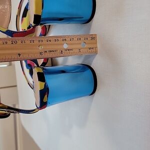 Colorful Strappy Heels with Blue Block Reflective Heel
