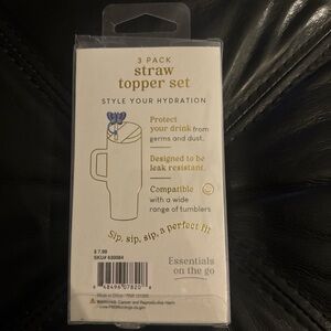 Set of three straw toppers featuring a mushroom, sunflower, and butterfly design. Bright and fun colors.