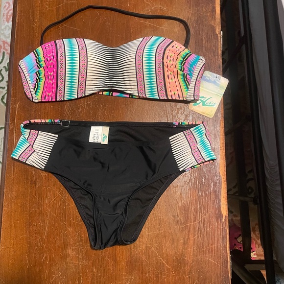 Vibrant bikini set featuring a colorful striped design. Perfect for a stylish day at the beach.