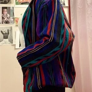 Vibrant funky blazer with multicolor stripes. Perfect for layering.