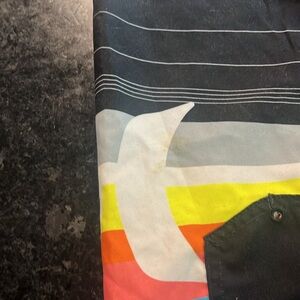 NWT Vibrant boys trunks featuring a rainbow of colors on a black base. Perfect for casual outings and beach days. Size medium and has a stain that can be washed out PRICE IS FIRM‼️