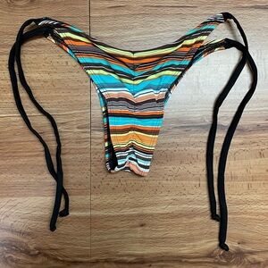 Bikini bottom with side tie. Also has ruched back which helps create a bubble-butt illusion, enhancing your bootie’s curves. Bikini bottom is lined in the front and back.