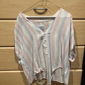Colorful Striped Button Down, Rails, Size M. Light rainbow stripes.