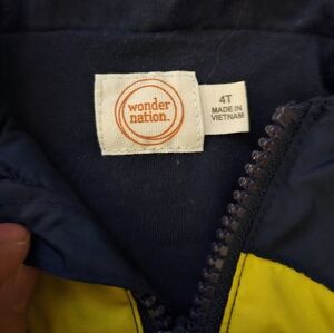 Stylish jacket with vibrant stripes. Features a hood and zip closure. Perfect for spring. No stains or holes.