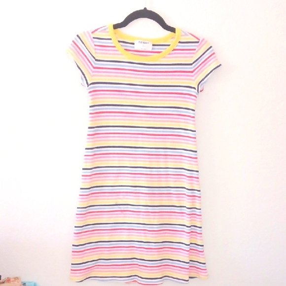 Brighten up your child's wardrobe with this colorful striped dress. Perfect for any occasion, this dress combines comfort and style effortlessly.