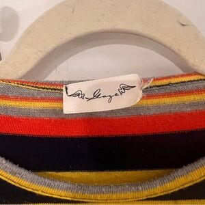 Bold knit top by Gaze. Features stripes in red, yellow, and navy. Size medium