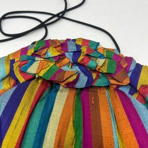 Add a splash of color to your ensemble with this vibrant striped mini bag. Perfect for any occasion.