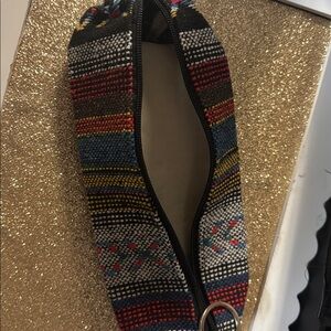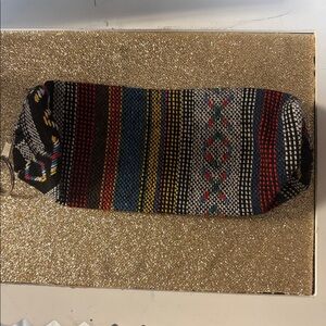 Vibrant pouch with multicolor stripes. Perfect for organizing small items.