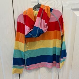 Bright rashguard with multicolor stripes. Includes a cozy hood.
