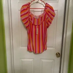 Add a pop of color to your wardrobe with this striped blouse. Featuring vibrant ruffles, it's a stylish choice for any outing.