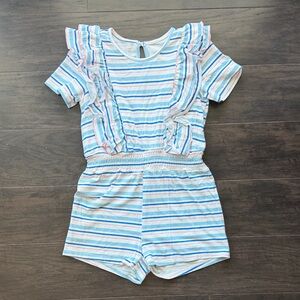 Brighten up your child's wardrobe with this colorful striped romper. Featuring playful ruffles and a comfortable fit, it's perfect for any occasion.