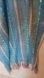 striped scarf, shawl. shades of blue, pink, green, and orange. some shiny metallic threading throughout. funky twisted fringe in a variety of colors. approximately 72×19.5 inches, not including the fringe. approximately 4 inches of fringe. excellent pre-owned condition. no stains or tears.