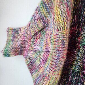Colorful Striped Soft Chunky Knit Poncho Cape Sweater Wrap Rainbow Women's OS