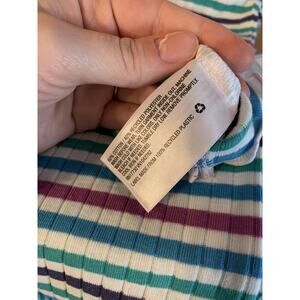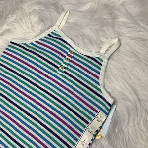 Blue, green, purple and white striped tank top. Faux button neckline. Ruffled lettuce style bottom hem. New with tags - never worn!