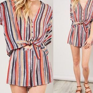 Colorful Striped Top/Short Set. Includes button down front knot top and shorts.