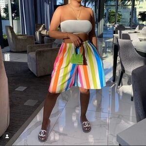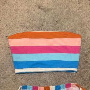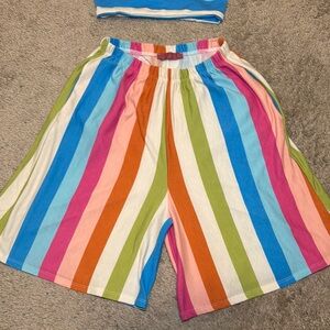 Vibrant striped bandeau top with matching wide-leg shorts. Perfect for a casual day out. Brand: Minaa Monroe. Worn only once!! Great vacation piece
