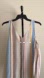 Color: Multicolor – vertical stripes in blue, white, yellow, rust, and taupe