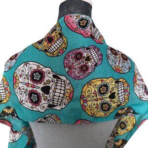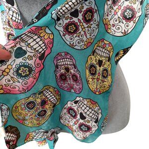 Colorful Sugar Skull Print Sheer Scarf Wrap