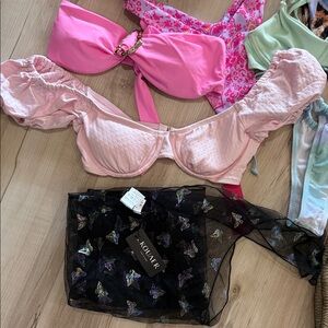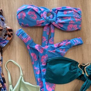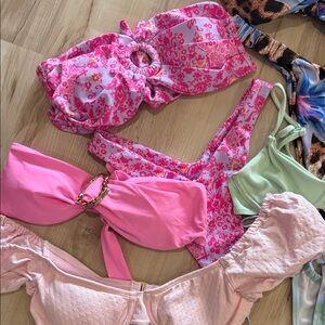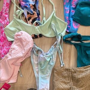 Chic swimwear bundle. Everything pictured is brand new with tags. Some without tags. The only item that was worn was the mint green bikinis set. All sizes range from extra small to small.