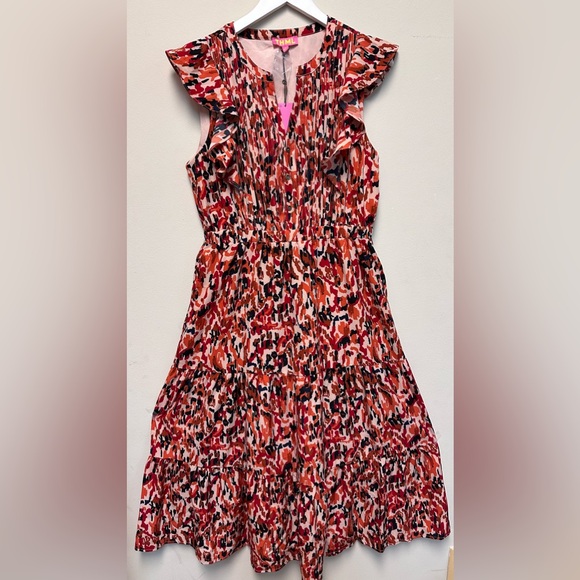 Bright and playful trendy dress perfect for any occasion. Features a vibrant multicolor pattern that adds a fun touch to your wardrobe.