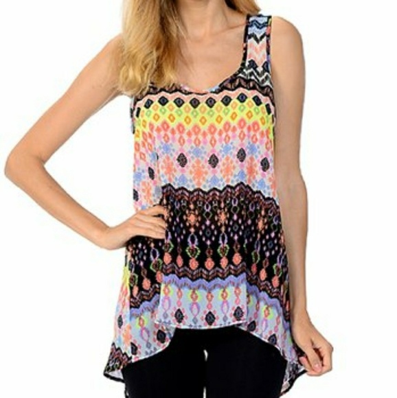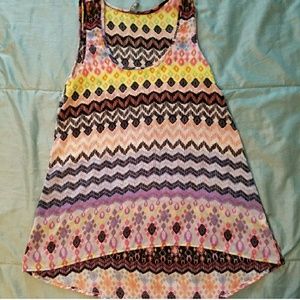 Colorful, sheer, hi-lo style tank top in great used condition.