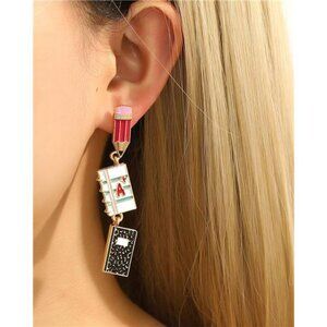 Colorful Teacher Earrings Pencil Apple Drop Dangle Back To School Gift Jewelry