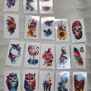 Vibrant temporary tattoos featuring animals and flowers. Perfect for adding a splash of color to your look.