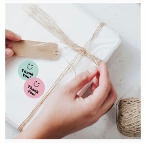 thank you stickers in various colors.