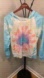 Vibrant tie-dye hoodie and joggers set with a rainbow of colors. Features a drawstring hoodie and comfortable joggers.