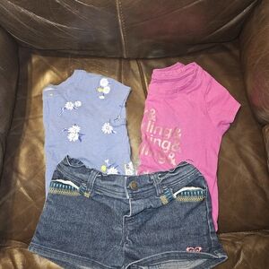 Denim ROXY shorts are 4t but fit like a size 3 and have an adjustable waist.