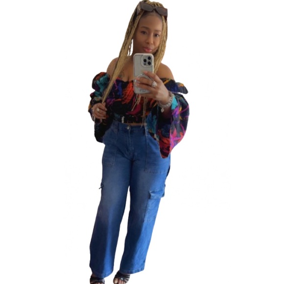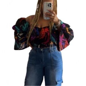 Multi color off the shoulders top… Perfect for dressing up👠 or down👟
